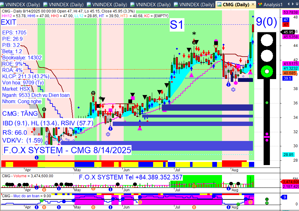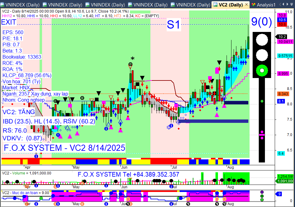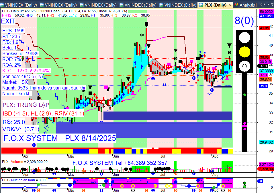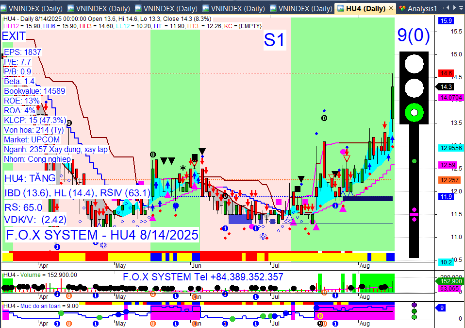 Chỉ số Vnindex cuối ngày 14/8/2025