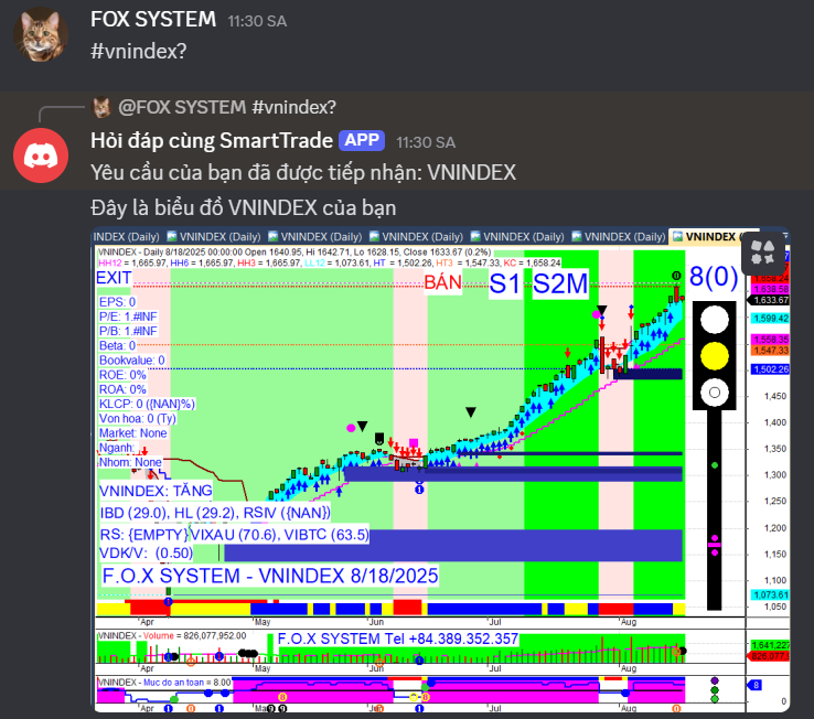 Chỉ số Vnindex cuối ngày 18/8/2025