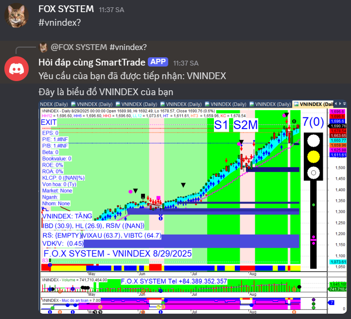 Chỉ số Vnindex trưa ngày 29/8/2025
