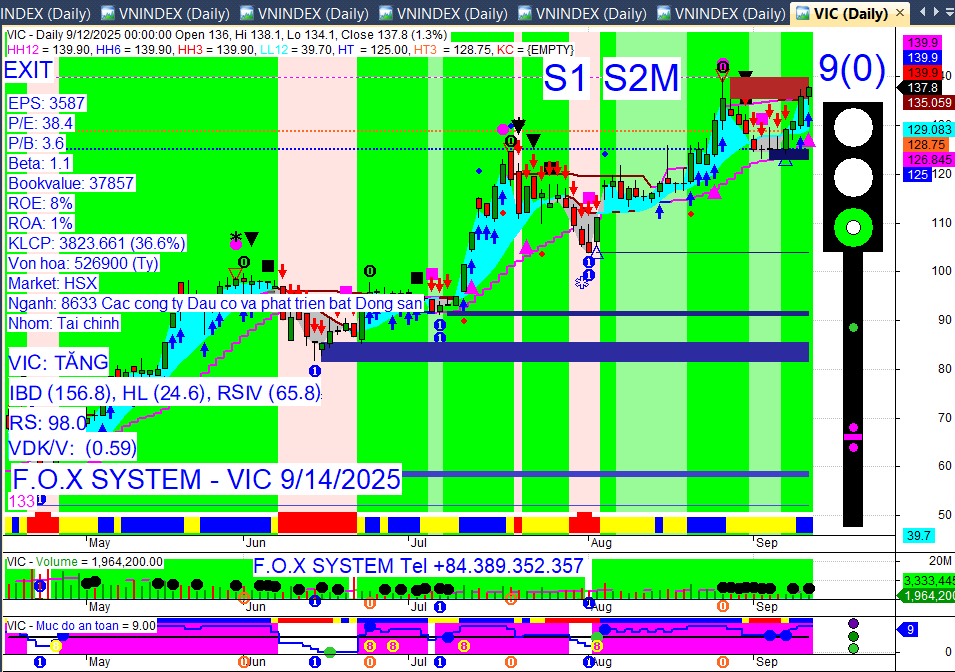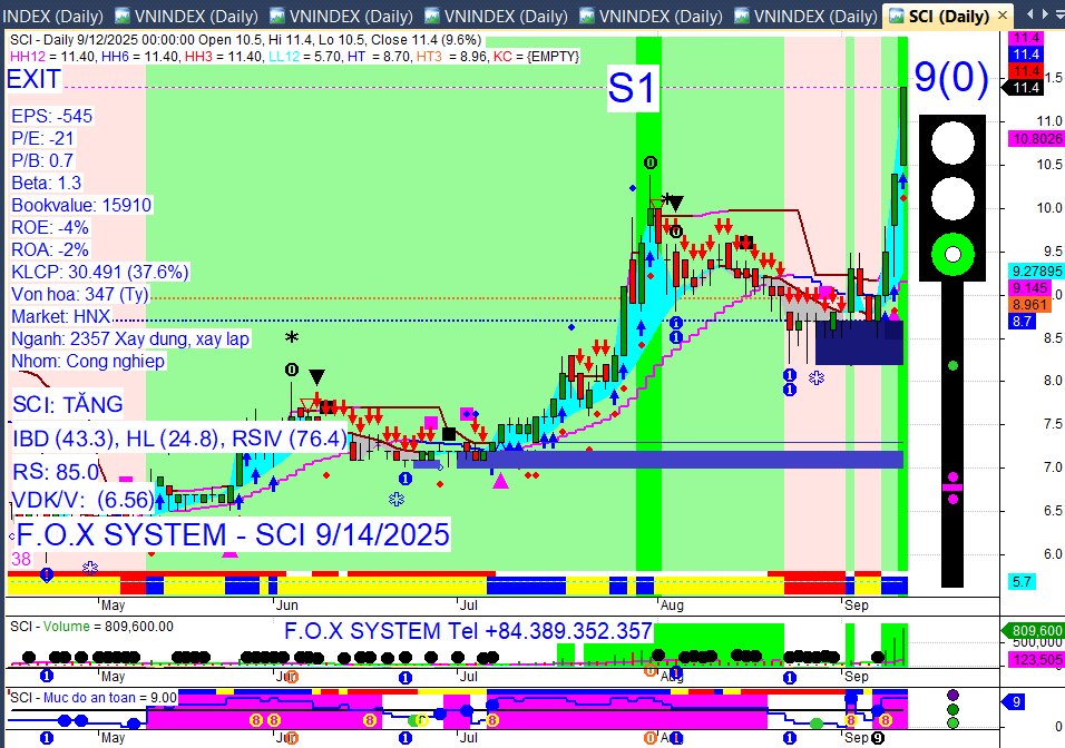 Chỉ số Vnindex trưa ngày 15/9/2025