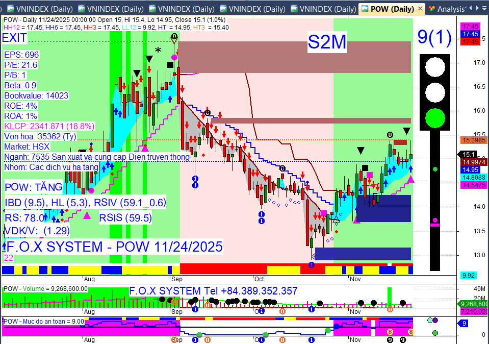 Tăng tích cực khác: TCX (+1,7%, khối lượng cao gấp 3 lần), NVL (+2,6%), KHG (+2,7%), HDG (+1,6%), CTD (+3,1%), VPB (+1%), SSB (+1%), POW (+1%).
