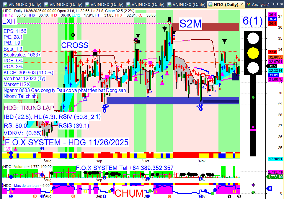 HAG (Hoang Anh Gia Lai): Cổ phiếu HAG có thời điểm tăng kịch trần lên 19.200 đồng/cp trong phiên 25/11, thiết lập đỉnh lịch sử, trùng với sự kiện “HAGL Investment Roadshow” cập nhật hoạt động và giới thiệu kế hoạch IPO, niêm yết các công ty con. HAGL cũng đã ký kết thỏa thuận hợp tác chiến lược với Ngân hàng Phương Đông (OCB) và CTCP Chứng khoán OCBS (OCBS).