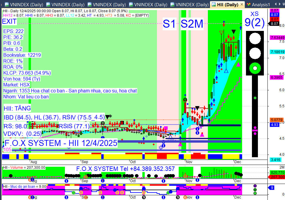 Các mã tăng trần/bứt phá mạnh: HID (+6,99%), TNI (+6,97%), EVG (+6,93%), HII (+6,89%), VTB (+6,85%), VPS (+6,76%), VOS.