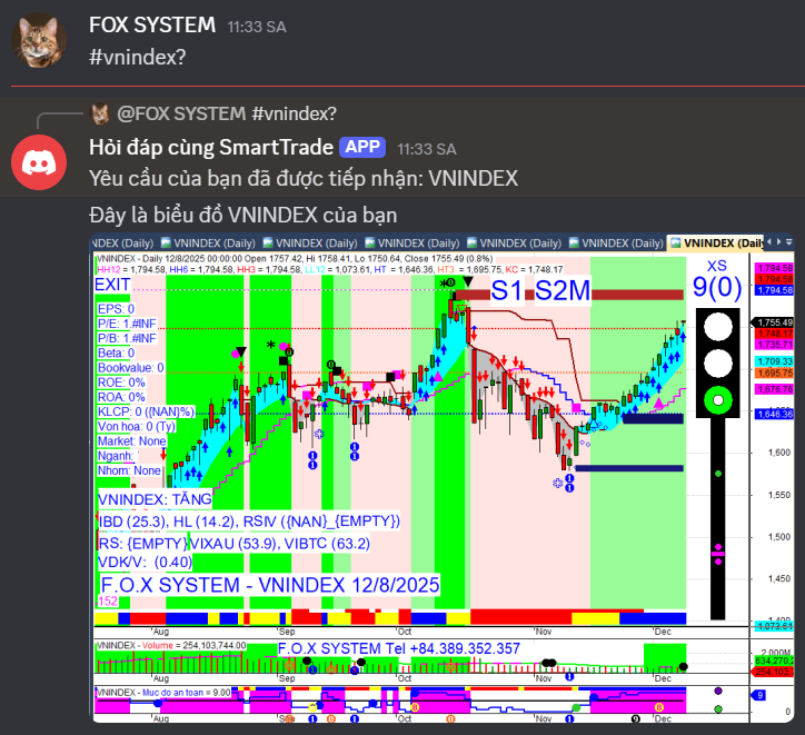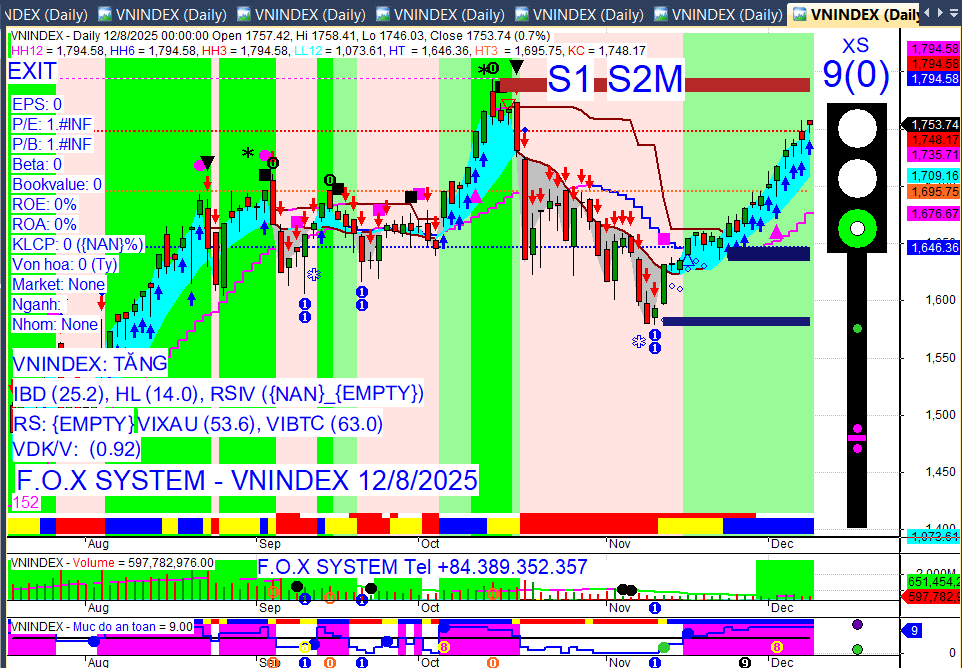 Nhận định xu hướng: VN-Index dự kiến tiếp tục rung lắc mạnh khi áp sát vùng kháng cự 1.750-1.800 điểm, cần thời gian tích lũy trước khi hình thành xu hướng rõ ràng hơn. Áp lực lãi suất cuối năm và thanh khoản thấp có thể khiến dòng tiền trở nên thận trọng.