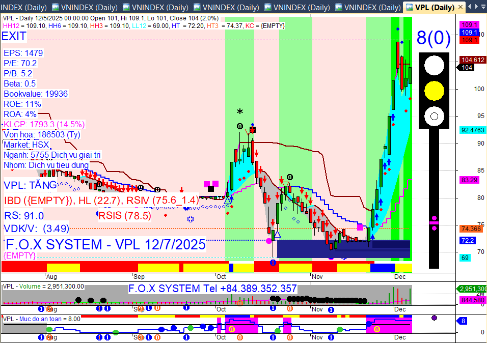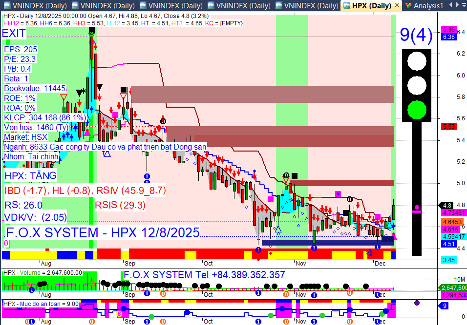 VN-Index nối dài đà tăng: Đóng cửa phiên cuối tuần trước (05/12/2025) ở mức 1.741,32 điểm, đánh dấu chuỗi tăng 4 tuần liên tiếp.