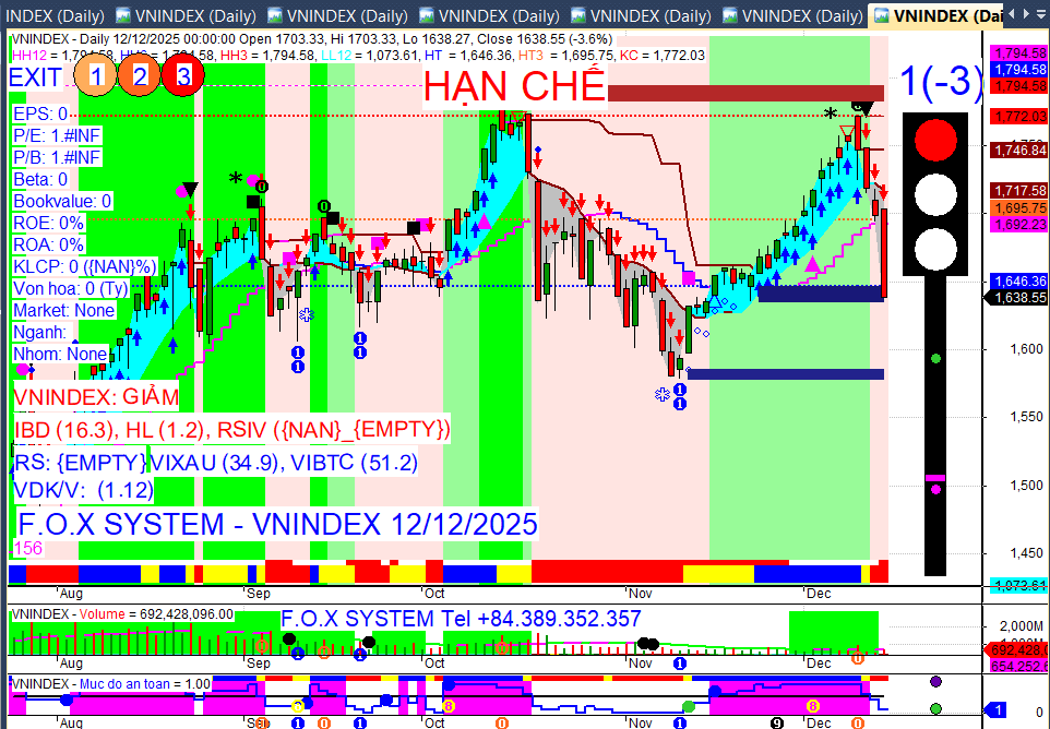 VN-Index phiên 11/12/2025: Đóng cửa ở mức 1.698,9 điểm, giảm 20,08 điểm (-1,17%), đánh mất mốc tâm lý 1.700 điểm.