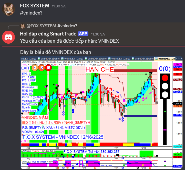 Chỉ số Vnindex cuối ngày 15/12/2025