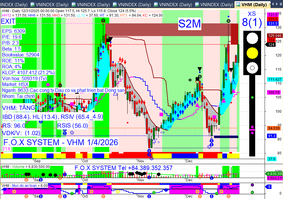 Bất động sản/Họ Vingroup: VIC (+25,1 điểm), VHM (+13,1 điểm) là động lực chính kéo VN-Index tăng điểm trong tuần cuối năm. VIC và VHM cũng là những mã tăng mạnh nhất năm 2025.