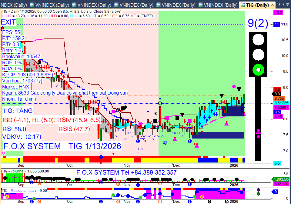 Nhận định xu hướng: Thị trường được kỳ vọng tiếp tục đà tăng trong phiên 13/01, với VN-Index hướng tới vùng kháng cự 1.880–1.900 điểm. Thanh khoản dự kiến tiếp tục cải thiện và dòng tiền vẫn phân hóa, chủ yếu tập trung vào nhóm Tài chính.