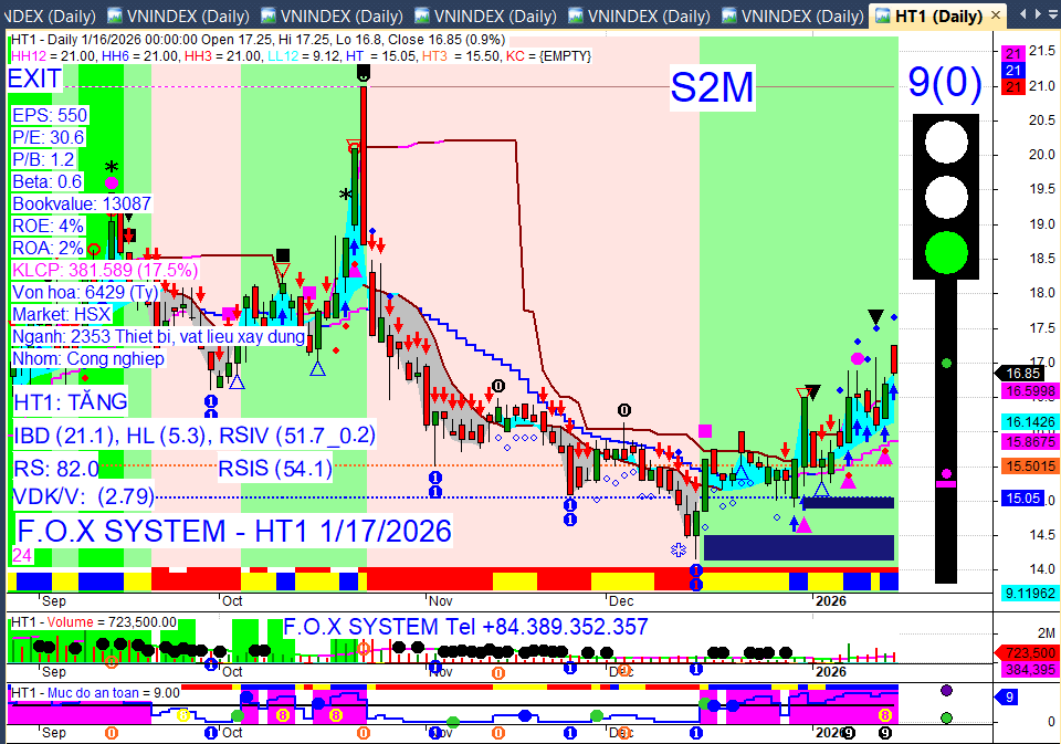 VN-Index: Đóng cửa phiên 16/01 tại 1.879,13 điểm (+0,77%). Kết thúc tuần, VN-Index tăng 11,23 điểm (+0,60%).