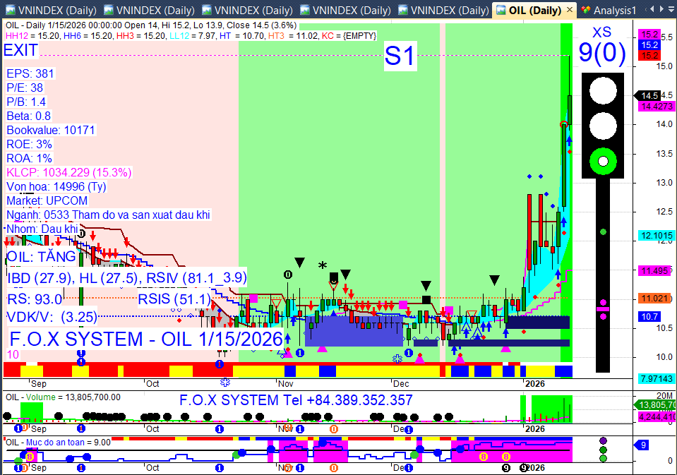 Nhận định xu hướng: Nhịp điều chỉnh của VN-Index trong phiên 15/01 được đánh giá là mang tính kỹ thuật và lành mạnh. Thị trường có khả năng sớm hồi phục trong các phiên kế tiếp và tiềm năng hướng tới vùng 2.000 điểm. Tuy nhiên, áp lực chốt lời vẫn hiện hữu ở nhóm vốn hóa lớn.