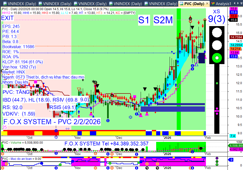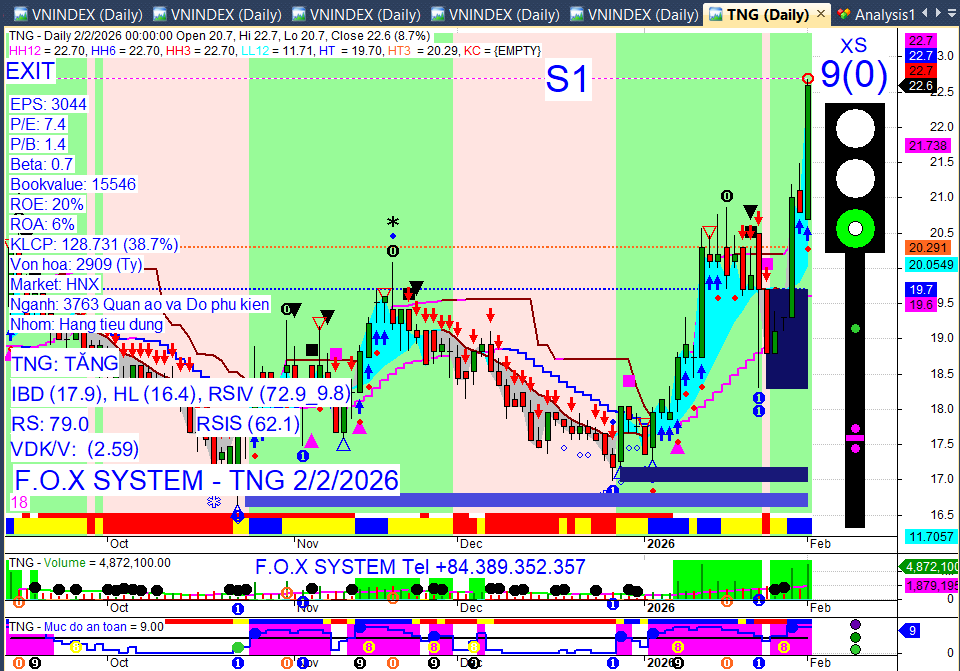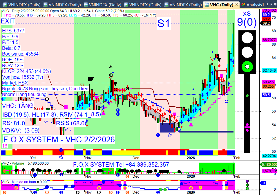 Tăng trần/Tăng mạnh: PVD, BVH, VHC, MSH, GIL (tăng trần); TNG (+8,7%); BSR (+6,7%); GVR, BCM, VGI (+4-5%); ANV, HAH, VSC, PVT (+2-5%).