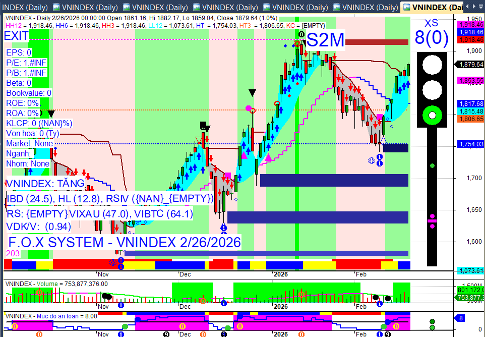 Key Risks: Lực bán ròng mạnh từ khối ngoại, đặc biệt tại các cổ phiếu vốn hóa lớn; áp lực chốt lời khi thị trường tiệm cận vùng cản kỹ thuật 1.880 - 1.900 điểm.
