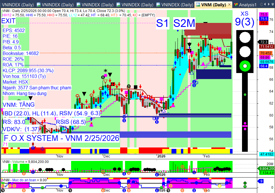 VNM (Sữa Việt Nam) ghi nhận doanh thu thuần quý 4/2025 đạt 17.045 tỷ đồng (+10,1%) và lợi nhuận sau thuế đạt 2.827 tỷ đồng (+31,7%). Lũy kế cả năm 2025, doanh thu thuần đạt 63.724 tỷ đồng (+3,1%) và lợi nhuận sau thuế đạt 9.414 tỷ đồng (-0,4%).