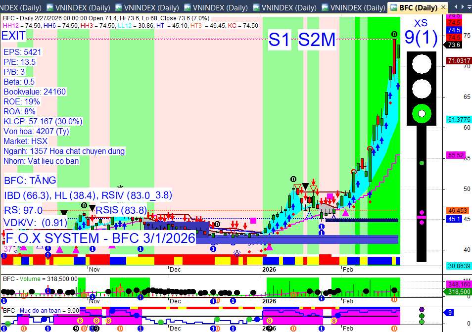 Cổ phiếu tăng mạnh tháng 2: VVS (+74,89%), HRC (+70,30%), BFC (+60,00%), DRH (+51,83%), BSR (+45,12%), PC1 (+31,85%), PVD (+31,74%), PET (+31,42%), VSC (+29,50%) và GMD (+28,27%).