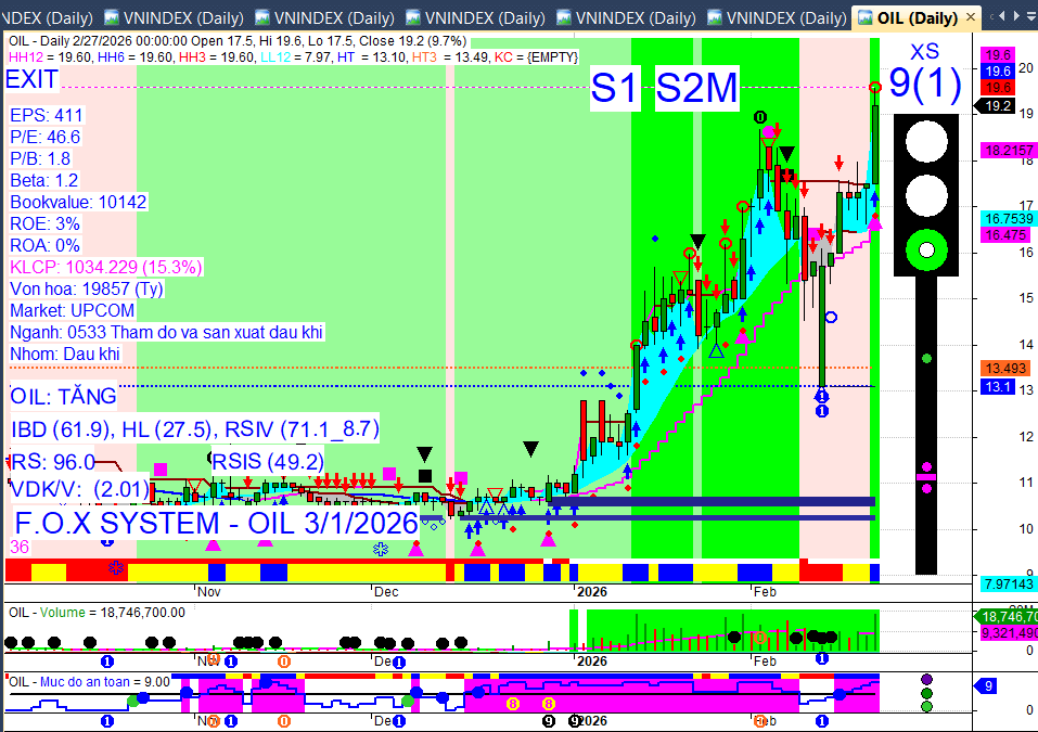 Các cổ phiếu tiếp tục tích cực theo danh sách tích cực hôm trước ngày 27/2/2026: GSP, PVP, ASP, VCI, PGC, OIL, DCM, PVT, DXP, PVC, PC1, DPM, VOS, HT1, PVB, PET, TIN, DDV, POW, TNG, HAH, VSC, GMD, GEE, TNT, TRC, BSR, PVD, VIC
