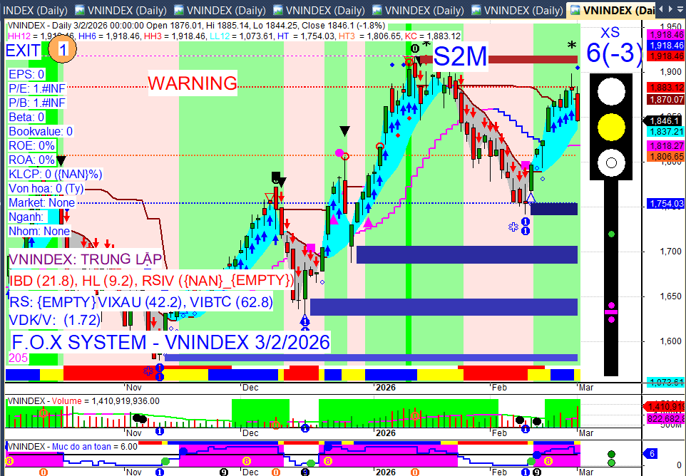 Nhận định xu hướng: VN-Index được kỳ vọng duy trì quán tính tăng điểm nhưng sẽ đối mặt với nhịp rung lắc, điều chỉnh kỹ thuật khi tiệm cận vùng kháng cự mạnh 1.900-1.920 điểm. Xu hướng ngắn hạn của thị trường chung vẫn duy trì ở mức trung tính.