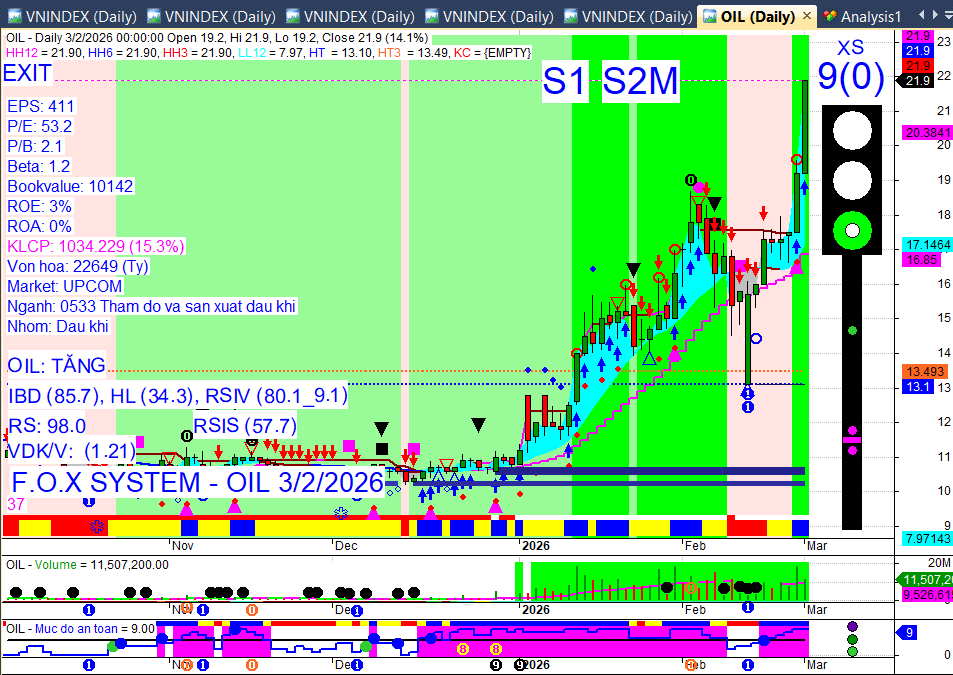 Tâm điểm thị trường: Nhóm dầu khí bùng nổ tăng trần nhờ căng thẳng Trung Đông, trong khi ngân hàng và bất động sản chịu áp lực bán tháo mạnh.