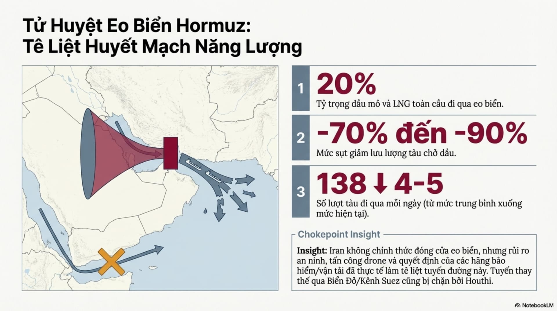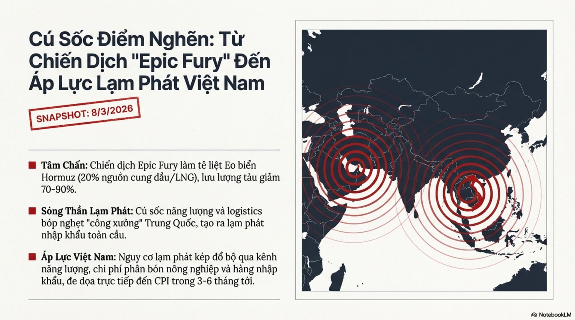 Chiến dịch Operation Epic Fury do Mỹ dẫn dắt nhắm vào Iran (tháng 3/2026) không chỉ là một cuộc xung đột quân sự mà còn là một “cơn địa chấn” kinh tế. Với việc Eo biển Hormuz – nơi vận chuyển 20% lượng dầu mỏ toàn cầu – bị đe dọa, thế giới đang đối mặt với những hệ lụy chưa từng có