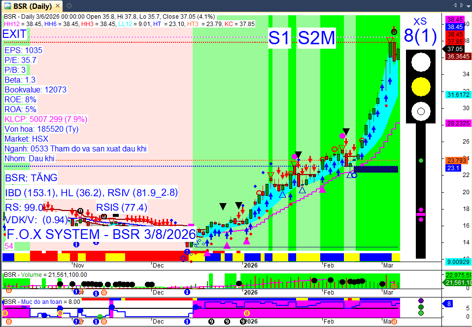 Tăng trần/nổi bật: HRC (tăng trần cả 5 phiên, +39,73%), BSR, GAS, PLX, DCM, DPM, PVT.