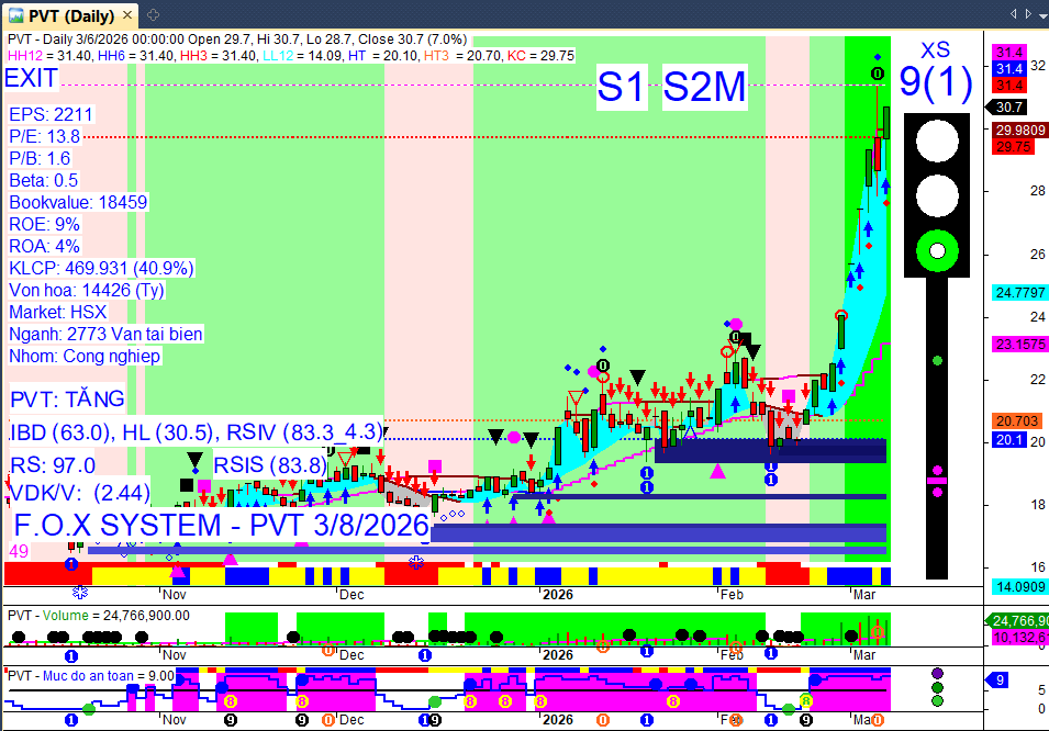 Tăng điểm nổi bật: Dầu khí, Phân bón, Hóa chất, Vận tải biển. Lý do: Hưởng lợi trực tiếp từ căng thẳng Trung Đông đẩy giá dầu và cước vận tải tăng vọt.