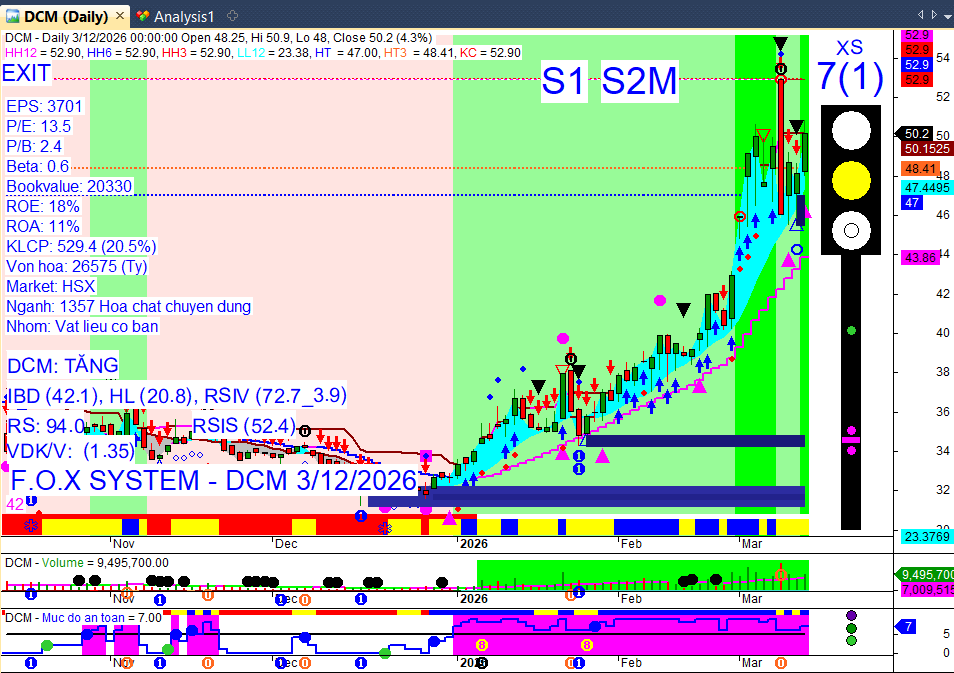 Tăng điểm nổi bật: VCG (+6,81%, tăng trần phiên thứ ba liên tiếp, thanh khoản hơn 972 tỷ đồng), DPM (+6,92%, tăng trần), DCM (+4,26%), DGC (+4,12%), NVL (+6,76%).