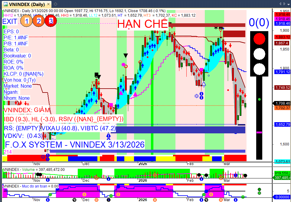 VN-Index phiên 12/03/2026: Đóng cửa 1.709,61 điểm, giảm 18,73 điểm (-1,08%).