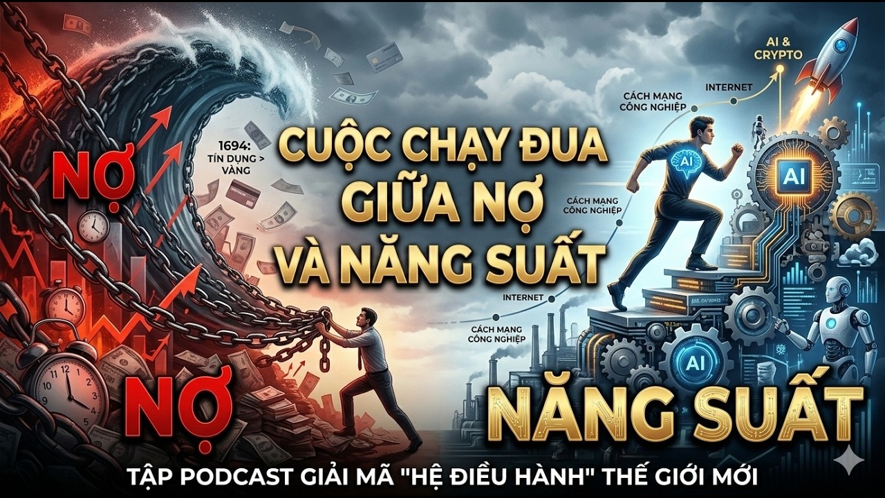 Bạn có bao giờ tự hỏi tại sao nền kinh tế toàn cầu luôn phải tăng trưởng bằng mọi giá? Tại sao các cuộc cách mạng công nghệ như Internet hay AI lại xuất hiện đúng lúc hệ thống tài chính gặp áp lực lớn nhất? Sự thật không nằm ở sự ngẫu nhiên, mà nằm ở một cuộc đua khốc liệt đã kéo dài hơn 300 năm: Cuộc đua giữa Nợ và Năng suất.