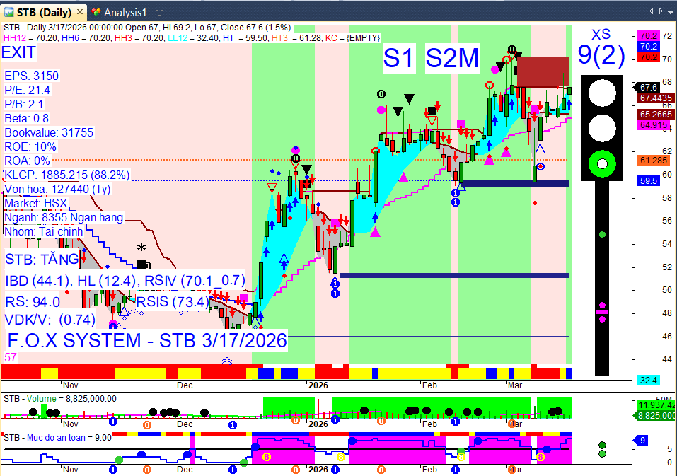 Nhận định xu hướng: VN-Index có thể sẽ tiếp tục duy trì đà tăng trong phiên 18/03 và hướng tới thử thách vùng kháng cự quanh đường trung bình động 100 ngày, tương ứng vùng 1.740-1.750 điểm. Tuy nhiên, thanh khoản suy giảm và khối ngoại bán ròng có thể ảnh hưởng đến đà tăng.