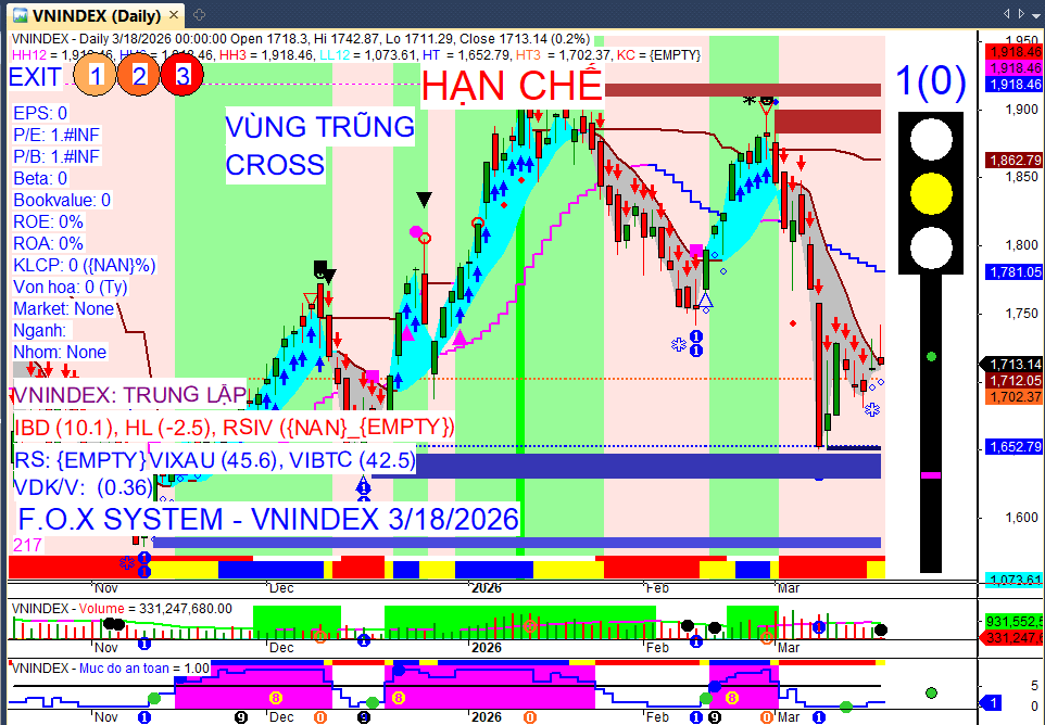 VN-Index phiên 17/03/2026: Đóng cửa 1.710,29 điểm (tăng +17,08 điểm, +1,01%).