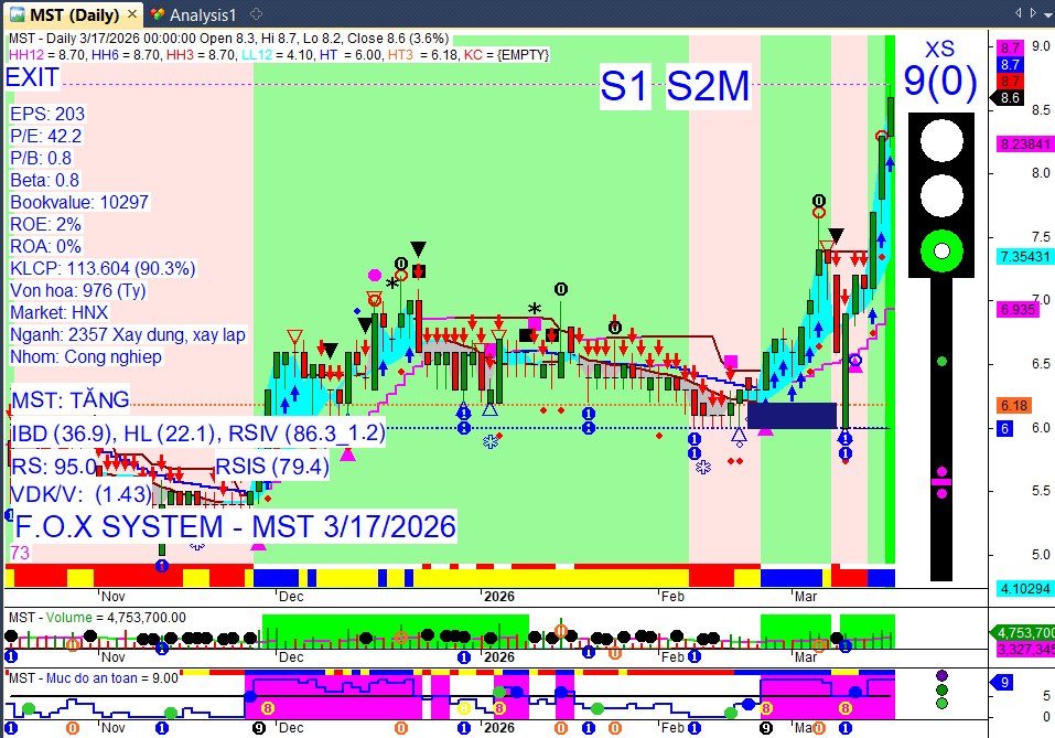 TCX (tăng trần): Là nhân tố dẫn dắt nhóm chứng khoán.