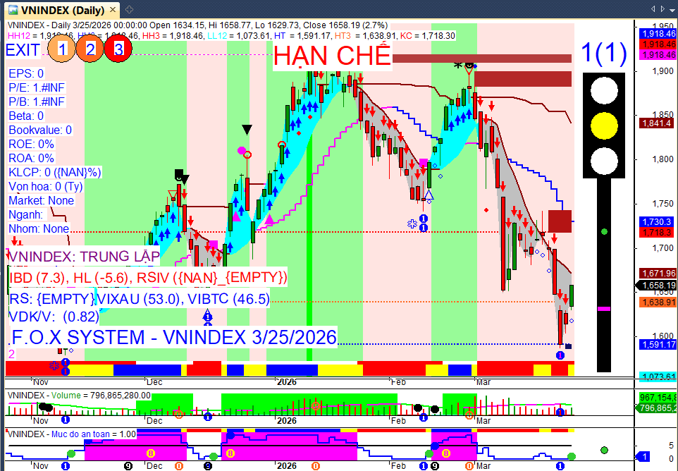 Hành động: Nhà đầu tư được khuyến nghị tiếp tục duy trì sự thận trọng, chưa vội quay lại vị thế mua gia tăng, cần kiên nhẫn chờ đợi thêm tín hiệu tích cực rõ ràng hơn. Giữ vị thế tiền mặt và không sử dụng margin.