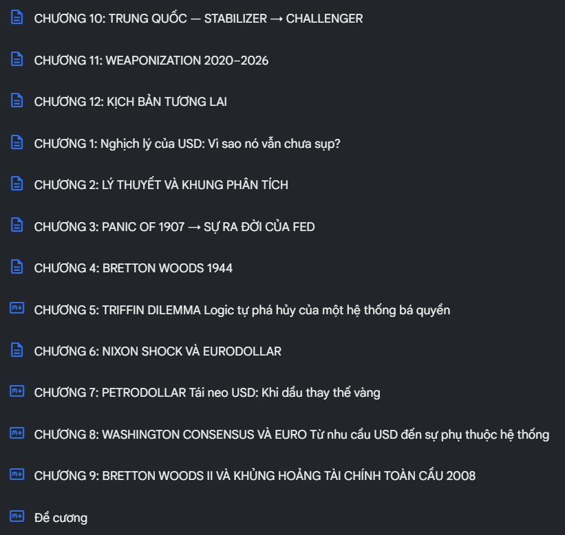 Dọc theo hành trình đó là những nghịch lý không ai ngờ tới: một quốc gia chống ngân hàng trung ương lại tạo ra ngân hàng trung ương quyền lực nhất lịch sử; mất neo vàng lại làm đô la mạnh hơn; khủng hoảng bắt nguồn từ Mỹ lại khiến cả thế giới chạy vào đô la; và Trung Quốc — quốc gia muốn thoát khỏi đô la nhất — lại là nước bị kẹt sâu nhất trong hệ thống đó.