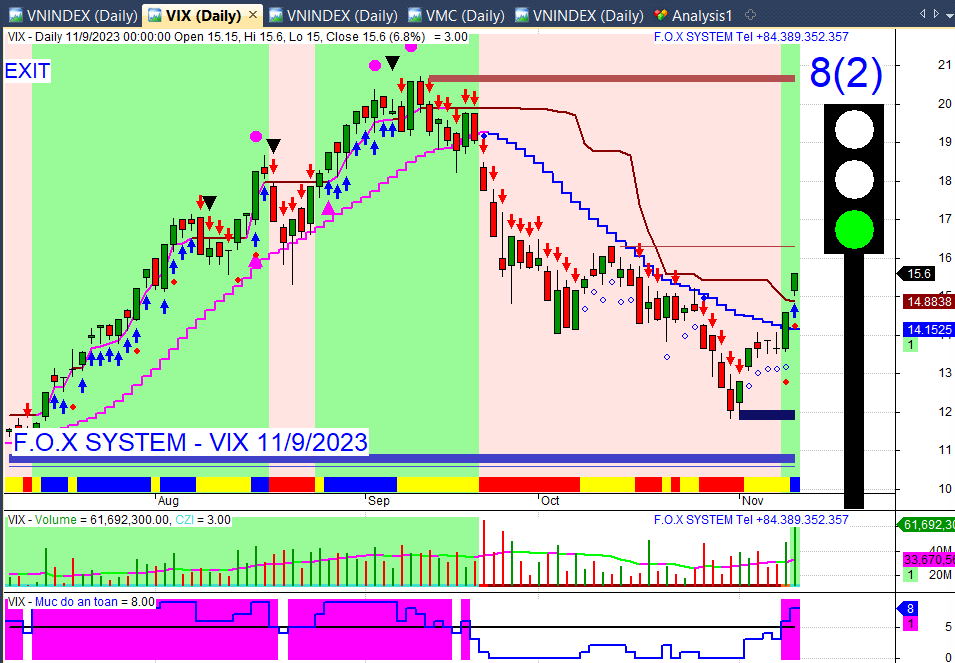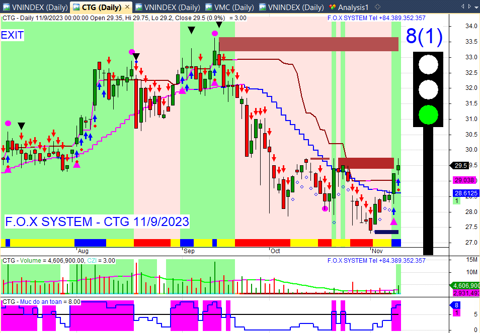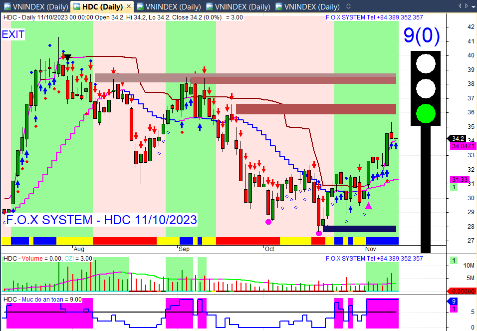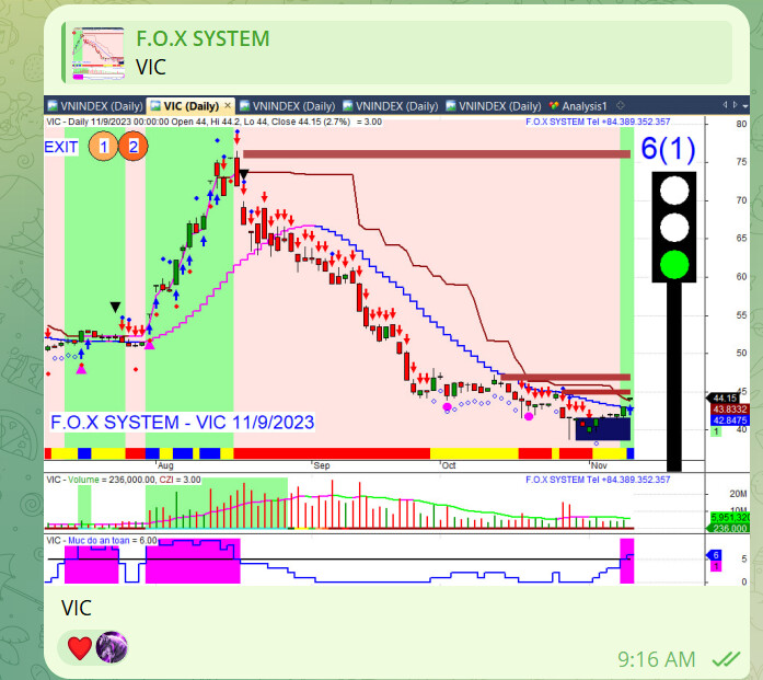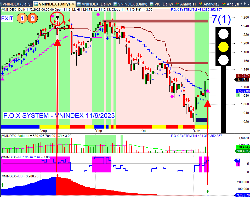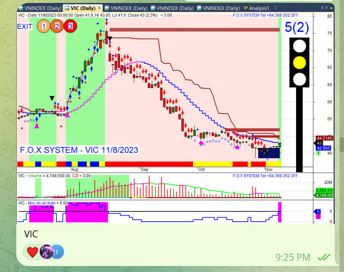 Nhịp đang diễn ra là nhịp hồi. Vẫn cần tích lũy và cân bằng. Trên hình có các tín hiệu exit mức 1, 2, 3. Cái mức exit đấy là để nhắc chiều thoát hàng. Khi nó vẫn còn thì vẫn cần tích lũy lại đã. Vậy chờ thêm đã nhé. Còn về hành động thì khi vào vùng xanh và mức an toàn chạm 5 là có thể tham gia một phần tiền với các mã có tiền vào rồi. Nhìn index để quyết định tỷ trọng tiền và cổ phiếu bạn nhé.