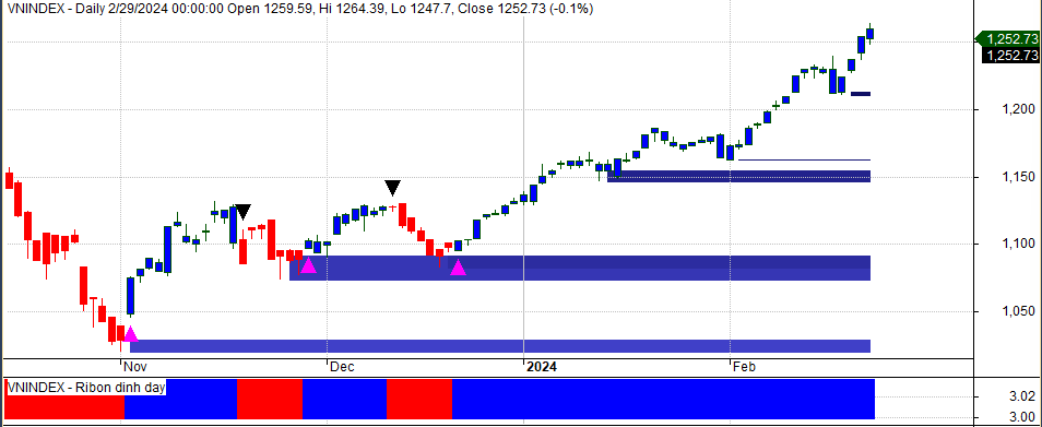 Chỉ số Vnindex cuối ngày 1/3/2024