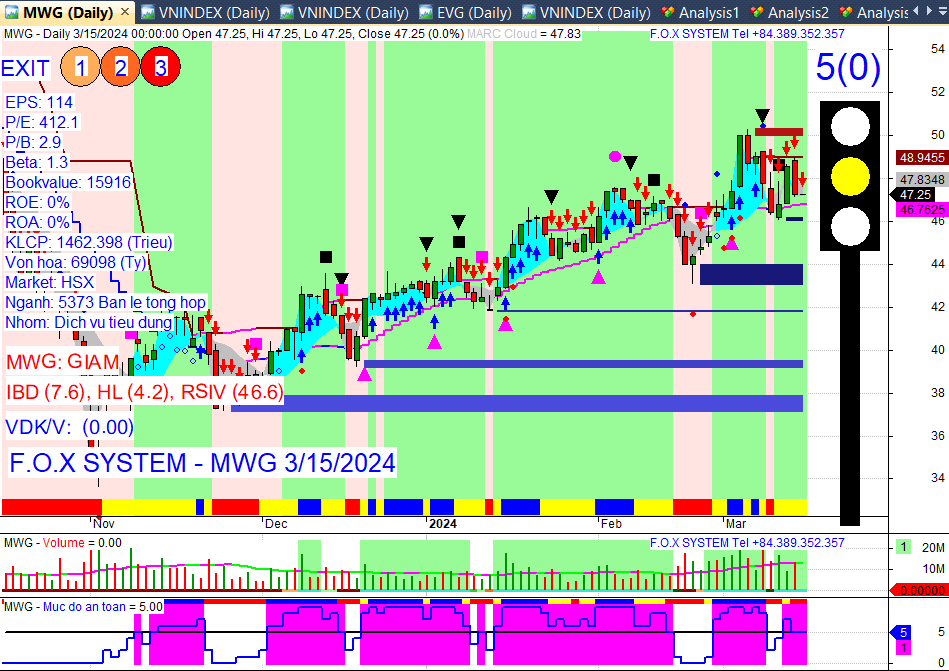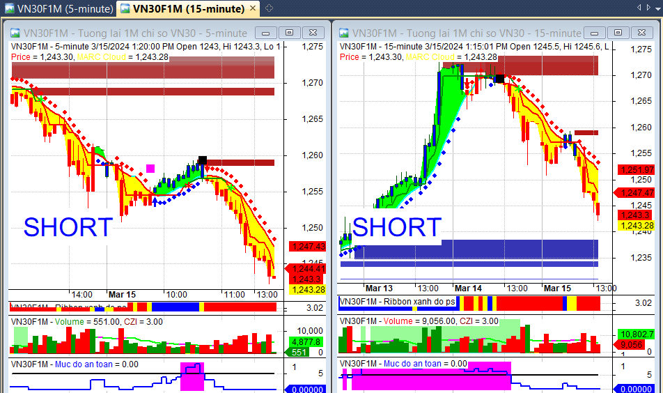 Chỉ số Vnindex trưa ngày 15/3/2024