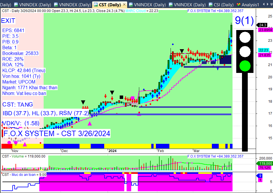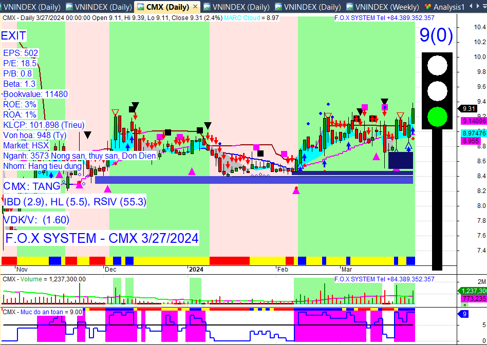 Chỉ số Vnindex cuối ngày 27/3/2024