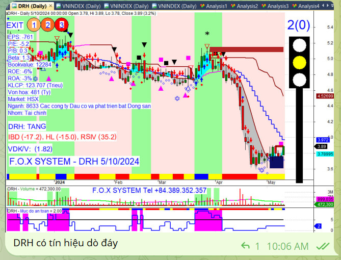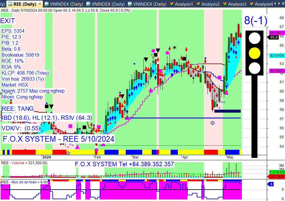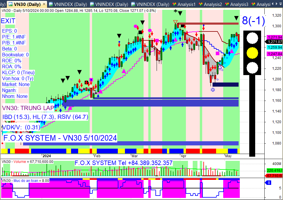 -1 nghĩa là mức độ an toàn giảm 1 so với hôm trước bạn nhé. Hôm trước là 9, hiện tại là 8. Chính là cái biểu đồ phía dưới cùng của hình nhé.