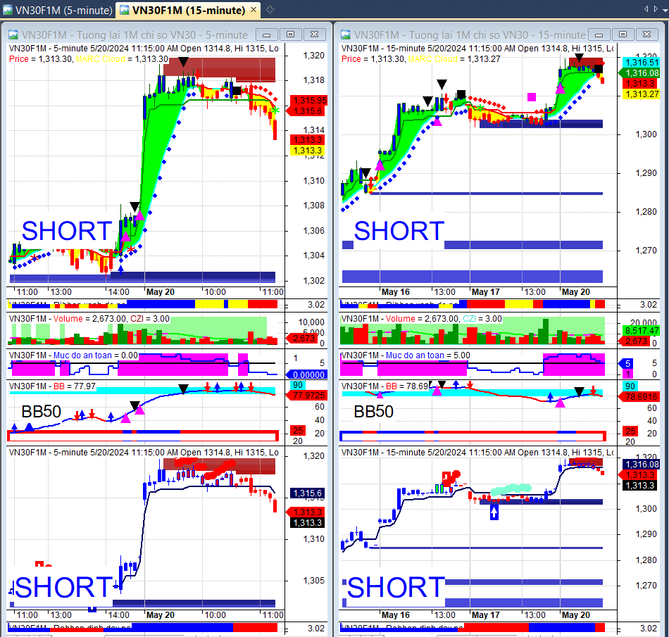 Chỉ số Vnindex trưa ngày 20/5/2024