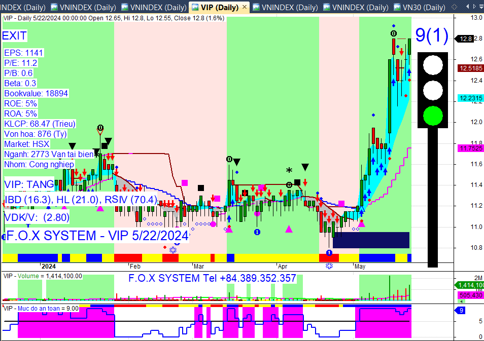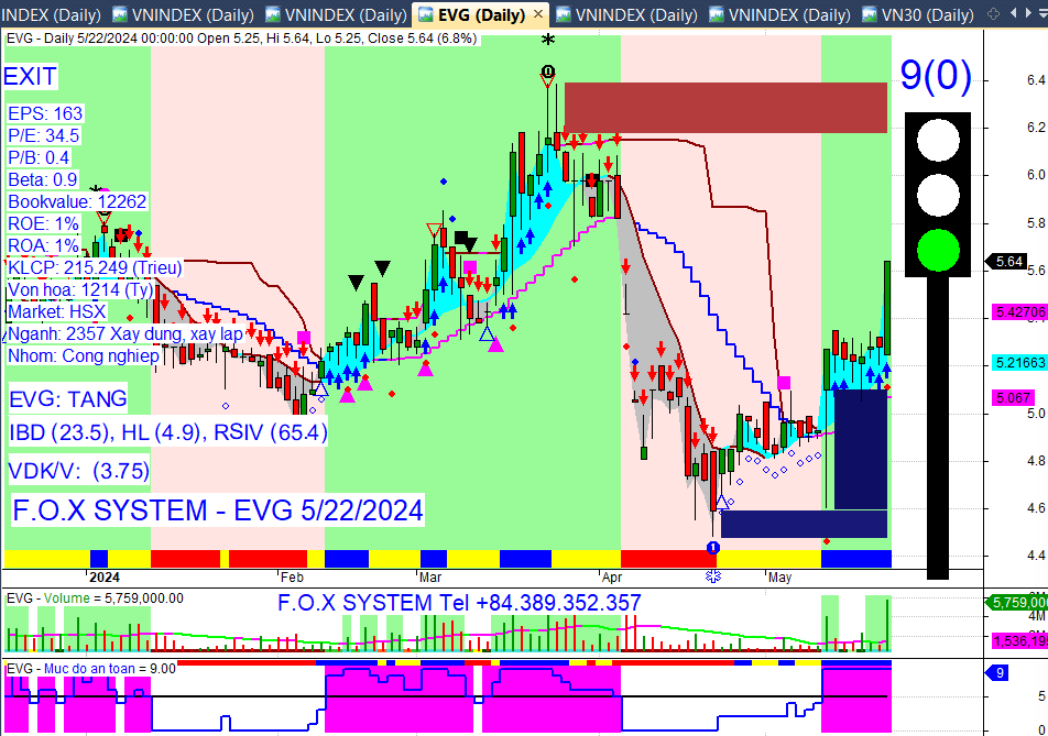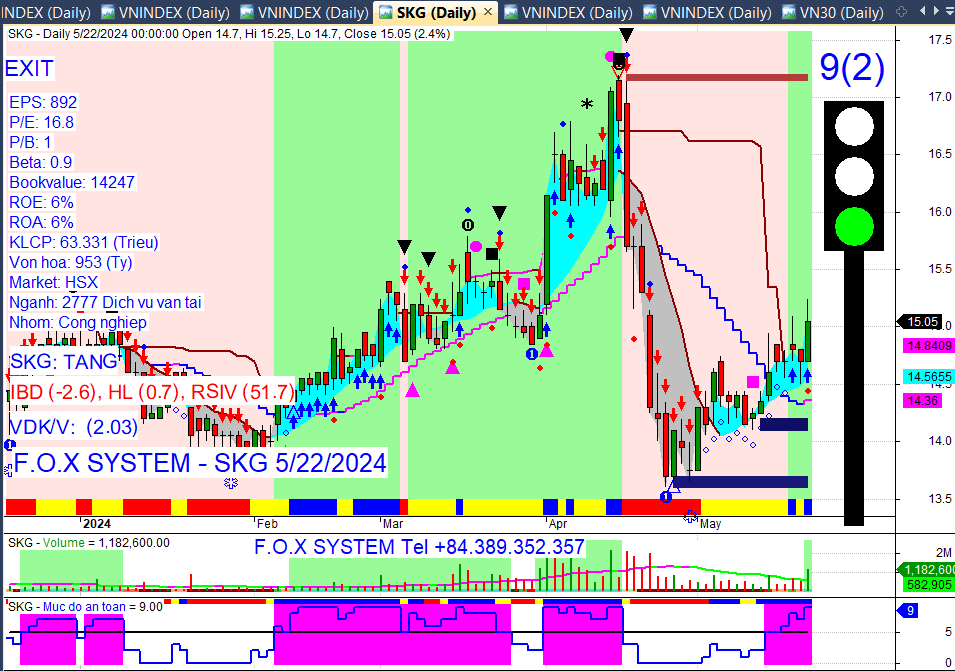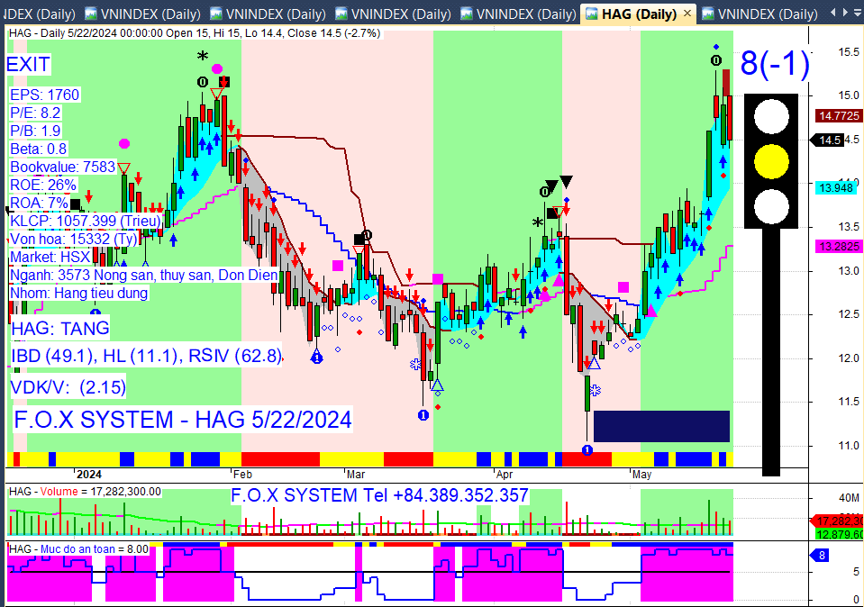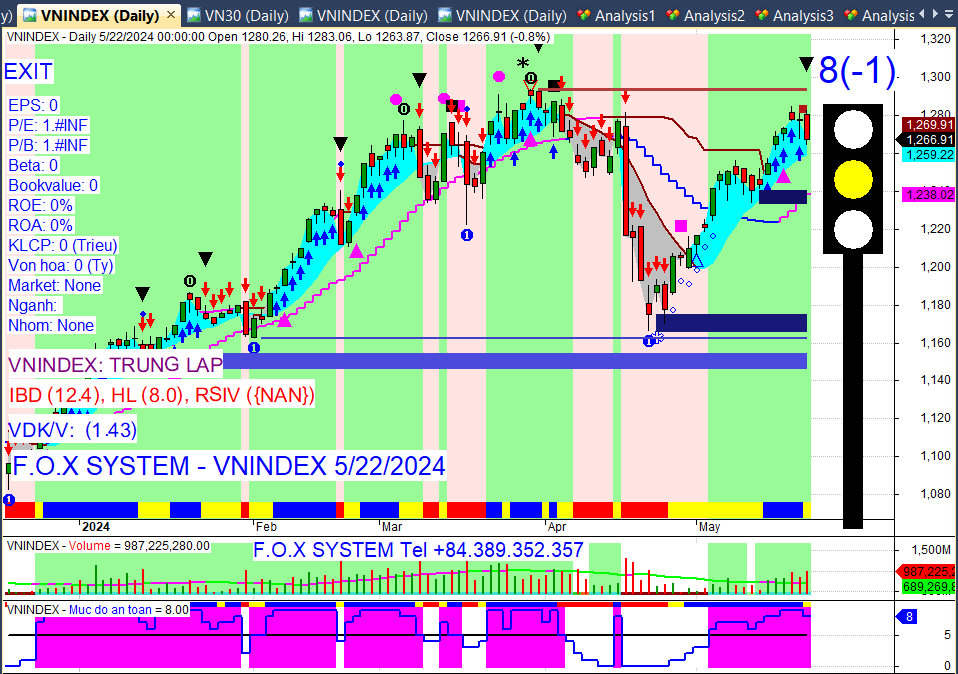 Chỉ số Vnindex cuối ngày 22/5/2024
