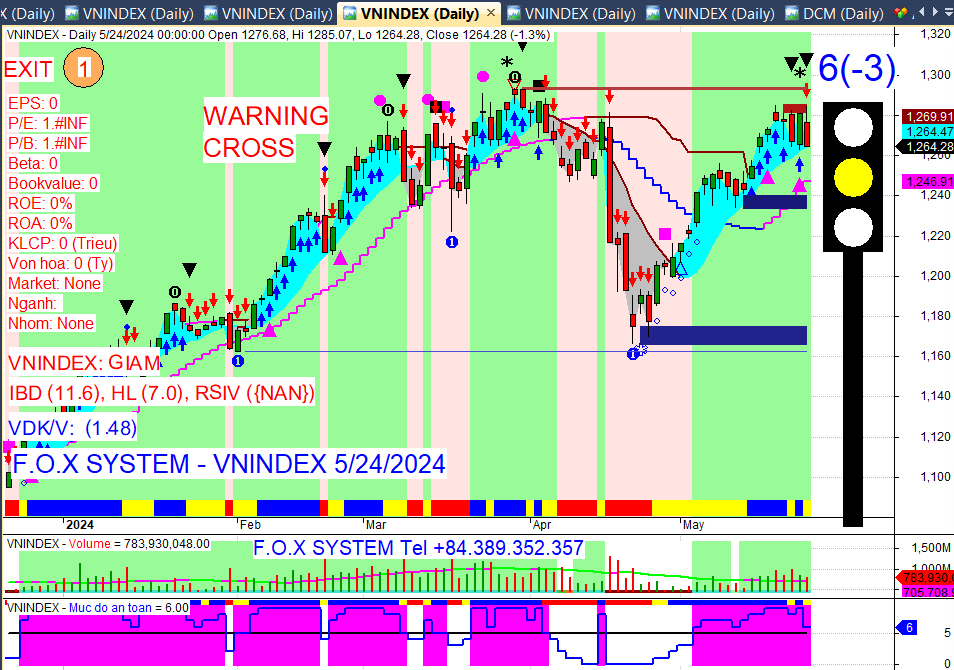 Chỉ số Vnindex cuối ngày 24/5/2024