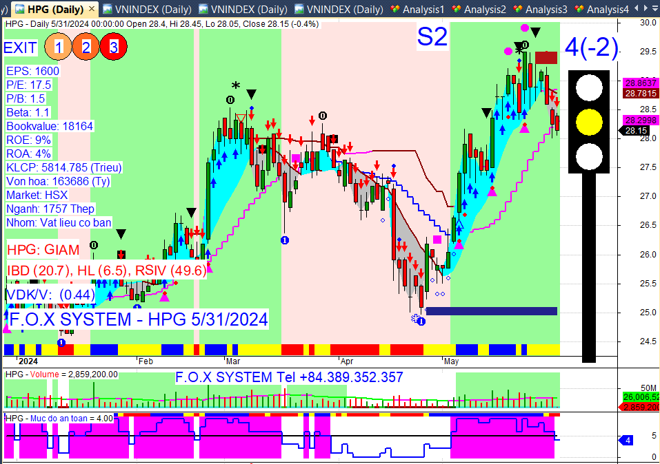 Chỉ số Vnindex cuối ngày 31/5/2024