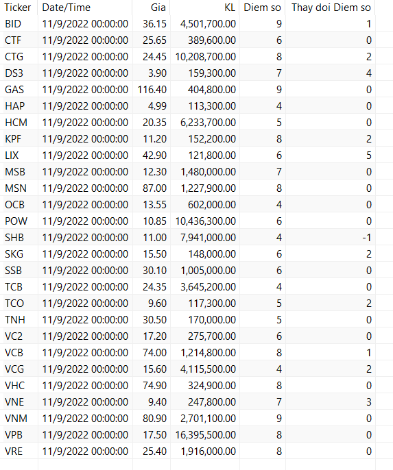 Chỉ số Vnindex cuối ngày 9/11/2022