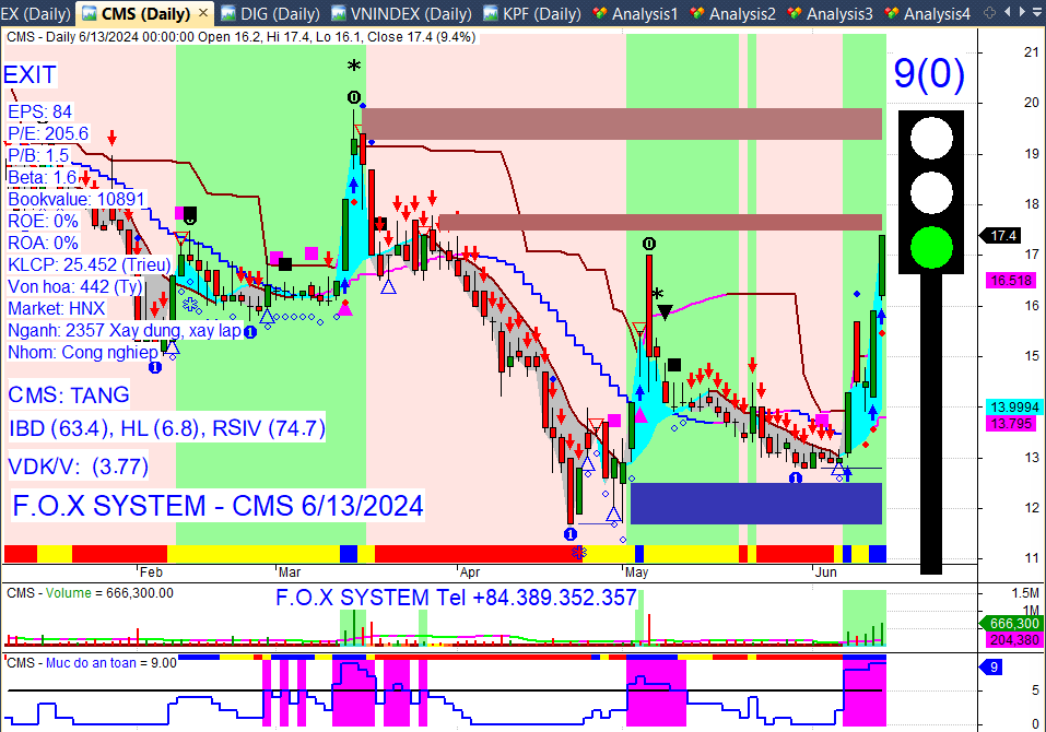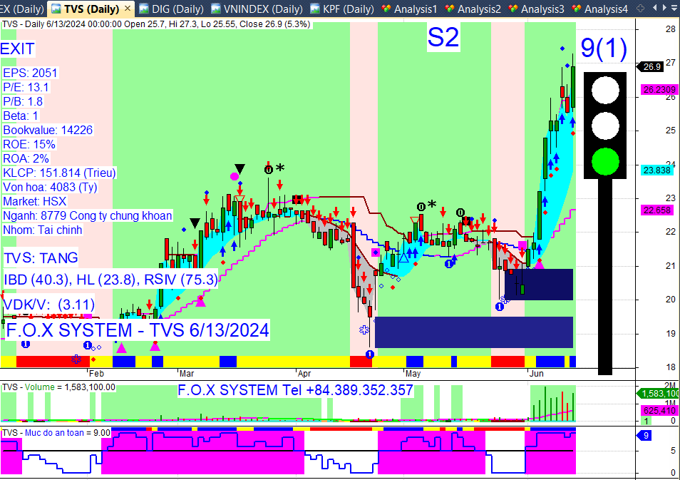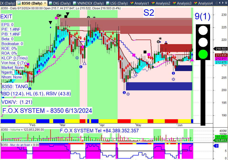 DIG như thế này là dò đáy được. Đã mất mũi tên đỏ chuyển sang chấm tròn rỗng xanh. Có Cross xanh, có chữ Tăng. Các chỉ số IBD>0, HL >0 và RSIV > 45 là đạt yêu cầu.