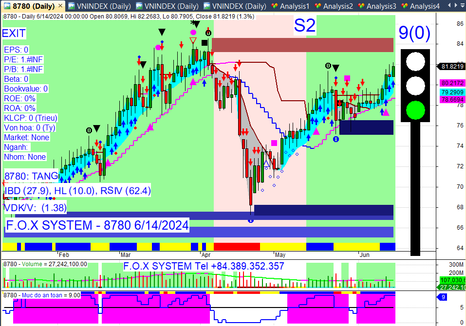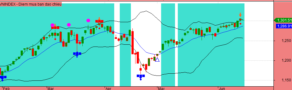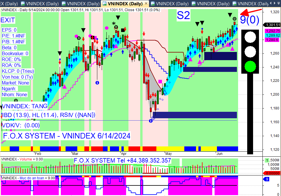 Vnindex xuất hiện số 0. Nhắc nhở đây có thể là điểm cao nhất và để ý chiều ngược lại. Trường hợp mà tăng tiếp vượt qua mức cao nhất đó thì nó sẽ biến mất và xuất hiện điểm khác. Điểm này có tính nhắc nhở nhé. Tiếp sau đó mà xuất hiện cảnh báo, hay châm vuông đen, tam giác rỗng xuống màu đỏ , tam giác đen thì càng phải để ý. Đấy là các dấu hiệu nhận biết vùng đỉnh.