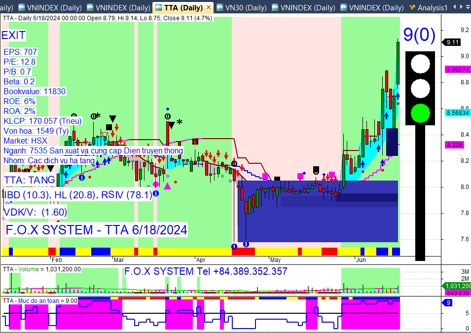 9 là mức an toàn hiện tại và 0 là không thay đổi so với ngày hôm trước. Nó chính là chỉ số mức độ an toàn ở phía dưới cùng của hình. Thang đo là từ 0 đến 9, mức trung gian là 5. Trên 5 thì mức an toàn có màu tím và dưới 5 là có màu trắng bạn nhé.