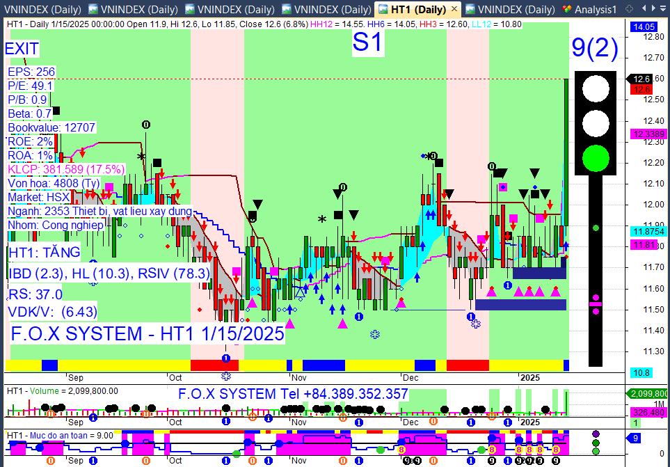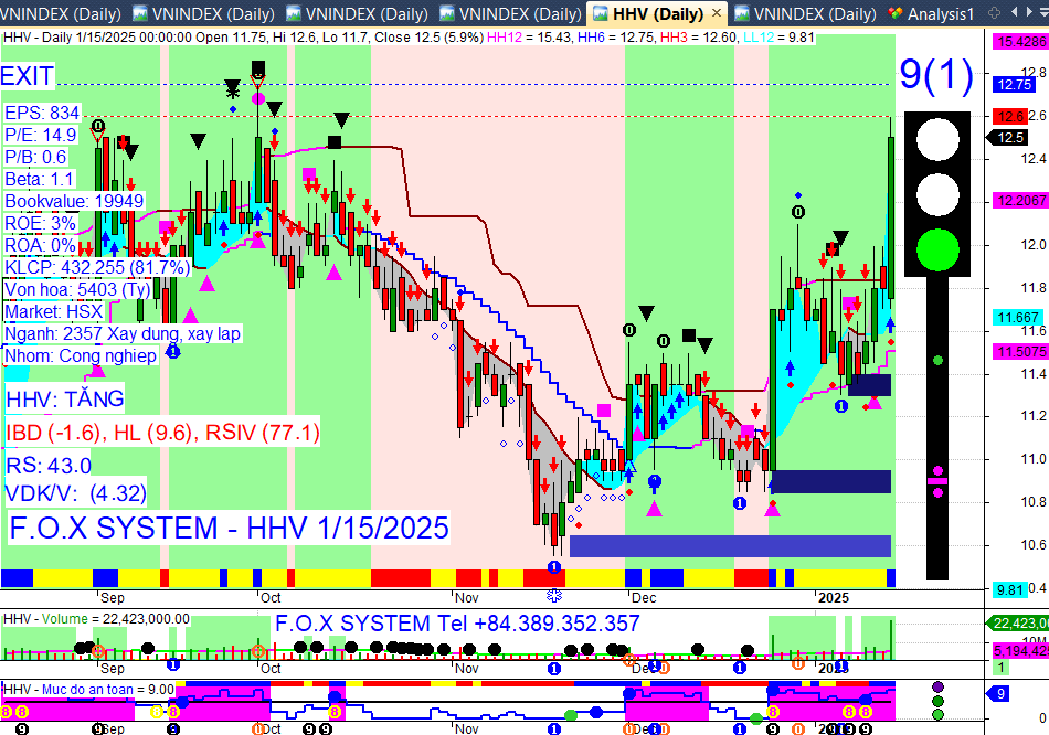 Chỉ số Vnindex cuối ngày 15/1/2025