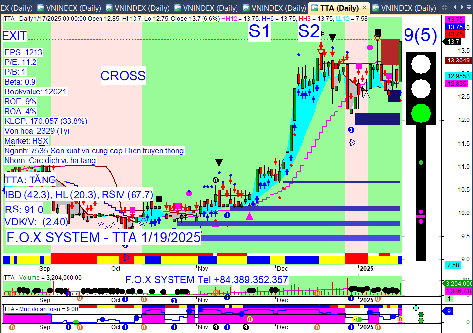 Chỉ số Vnindex cuối ngày 17/1/2025
