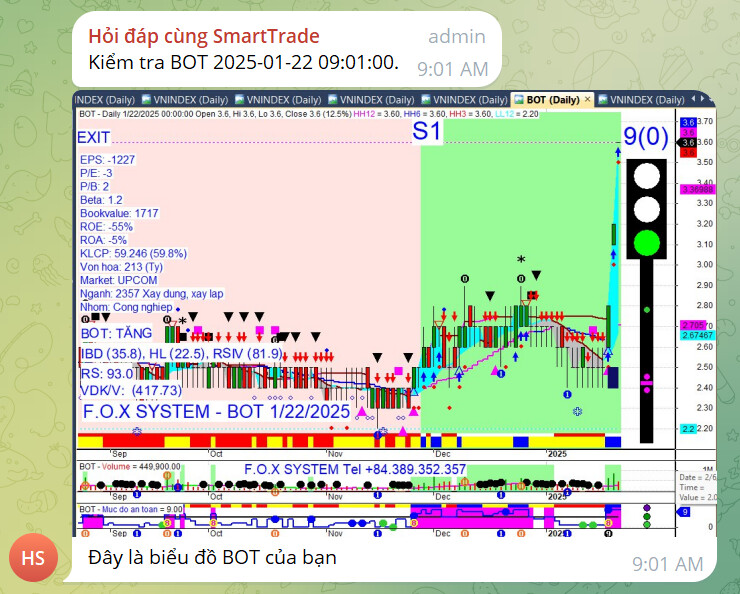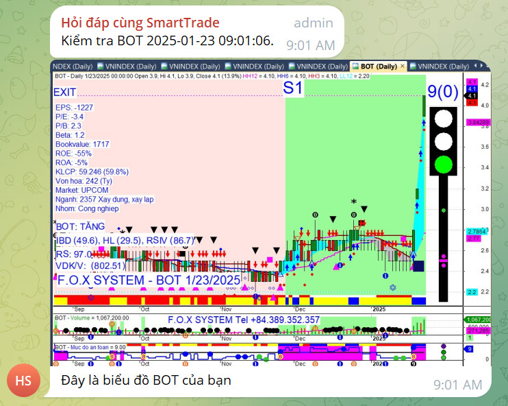 Nhật ký tự động ghi nhận lại là BOT ở thời điểm 9h01