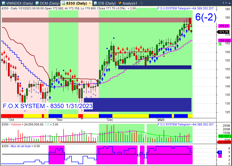 Chỉ số Vnindex cuối ngày 31/1/2023. Các anh nhúng ghê quá.